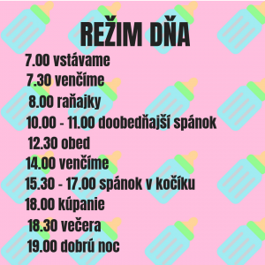 Režim dňa – je to mýtus alebo realita? Niektoré body programu sa u nás opakujú so železnou pravidelnosťou. Iné sa dejú tak trochu náhodne. Počas dňa nezabúdame ani na psíka, dieťa väčšinou šupnem do nosiča a vyrazíme do parku.